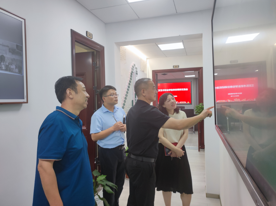9月18日,江汉艺术职业学院校友会(筹)副主任、我校78级化学教育专业校友关宗平、校友会(筹)副主任张书银、招生处副处长张晋峰、校友会筹备办公室副主任肖溢宁等一行来我校合作发展处调研交流。合作发展处处长金梅、副处长刘锁热情接待了关宗平一行。