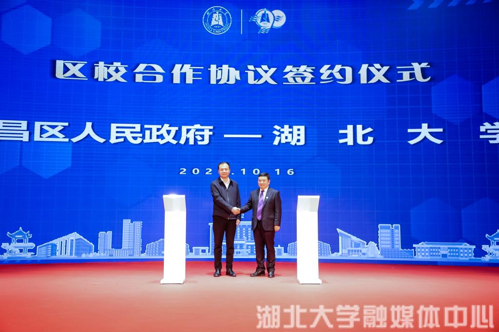 10月16日,湖北大学与武昌区政府正式签署《区校合作协议》。校党委书记谢红星,校长刘建平,副校长蒋涛、钱建国,武昌区委书记、区长余松,区委常委、区委办主任周明,副区长胡剑等出席签约仪式。刘建平与余松分别代表湖北大学与武昌区政府签订区校合作协议。刘建平说,学校始终扎根武昌沙湖之滨,与武昌血脉相连、文脉相传,双方结成了全面协同互动的合作关系。学校在武昌区政府的帮助和支持下不断发展和成长,同时也为武昌区的经济社会发展贡献了自己的力量。在抗击新冠疫情期间,湖北大学响应武昌区政府需求,积极投身战疫斗争,谱写了可歌可