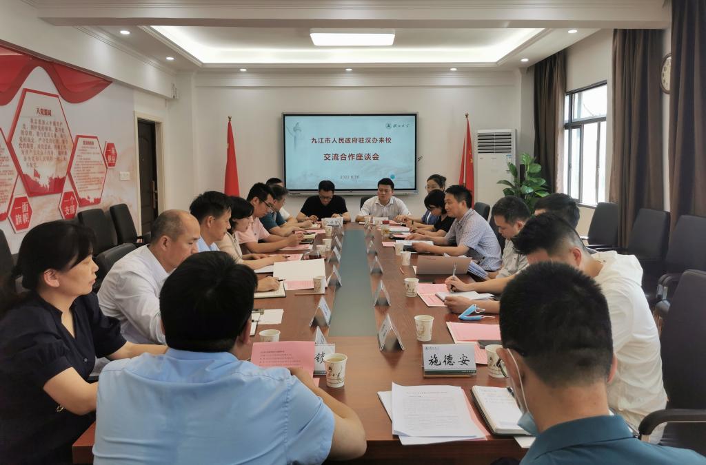 6月16日,九江市人民政府驻武汉办事处主任卢礼敏一行来校交流校地合作。双方召开座谈交流会,围绕产业技术研究院设立、人才联合培养、地方院校校际合作、科研成果转化、招才引智、大学生实习实训基地建设等方面的内容进行了充分的交流。学校合作发展处、科学技术发展研究院、人文社会科学研究院、研究生院、本科生院、资环环境学院、化学化工学院、物理与电子科学学院、旅游学院、材料科学与工程学院等单位负责人参加座谈会。审稿:金梅