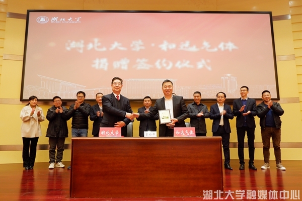 12月22日下午,湖北和远气体股份有限公司与湖北大学共建,支持学校科技创新、人才队伍建设和校企融合发展,双方签订功能性硅烷及其衍生物材料校企研发中心战略合作协议。湖北和远气体股份有限公司董事长兼总经理、1991级通用机械专业校友、宜昌校友分会会长杨涛,副总经理、1991级通用机械专业校友刘学荣,研发中心主任杜大艳,宜昌校友分会副会长兼秘书长祝恒炎,通用机械专业校友分会代表,湖北大学校长刘建平,副校长钱建国,合作发展处、科学技术发展研究院、学生工作部、物理与电子科学学院、材料科学与工程学院负责人和师生代表参