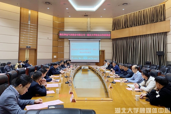 11月29日下午,湖北和远气体股份有限公司董事长杨涛校友一行来校洽谈校企合作事宜。副校长艾青松,科学技术发展研究院、物理与电子科学学院、材料科学与工程学院、化学化工学院等负责人和教授代表参加座谈会。艾青松对杨涛一行来访表示热烈欢迎,并介绍了学校科研优势以及服务社会情况。他指出,校企合作事关高等教育内涵发展,关乎社会经济发展,是助推产业转型升级、提升企业核心竞争力的重要途径。希望双方以此次洽谈为契机,加强科学研究、人才培养、学术交流和教学实践等方面的精诚合作,将产学研融为一体,取得互利共赢的丰硕成果。杨涛介